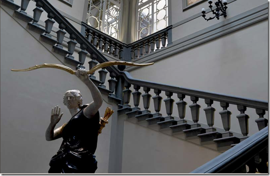 The Palazzo’s pietra serena staircase is now the permanent home of this marble Diana the Huntress statue by Gherardo Silvani (1579-1675).